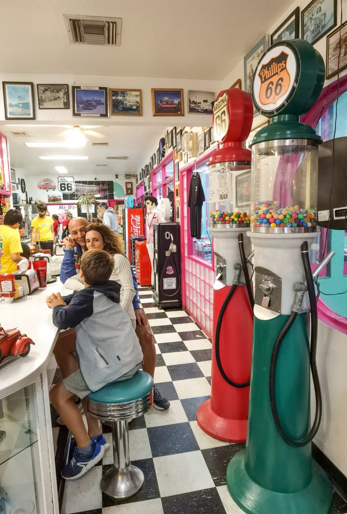 Siguiendo la 66 llegamos a Kingman, y nos vamos directamente a cenar a Mr. D’Z, un bar ambientado en los años 50.